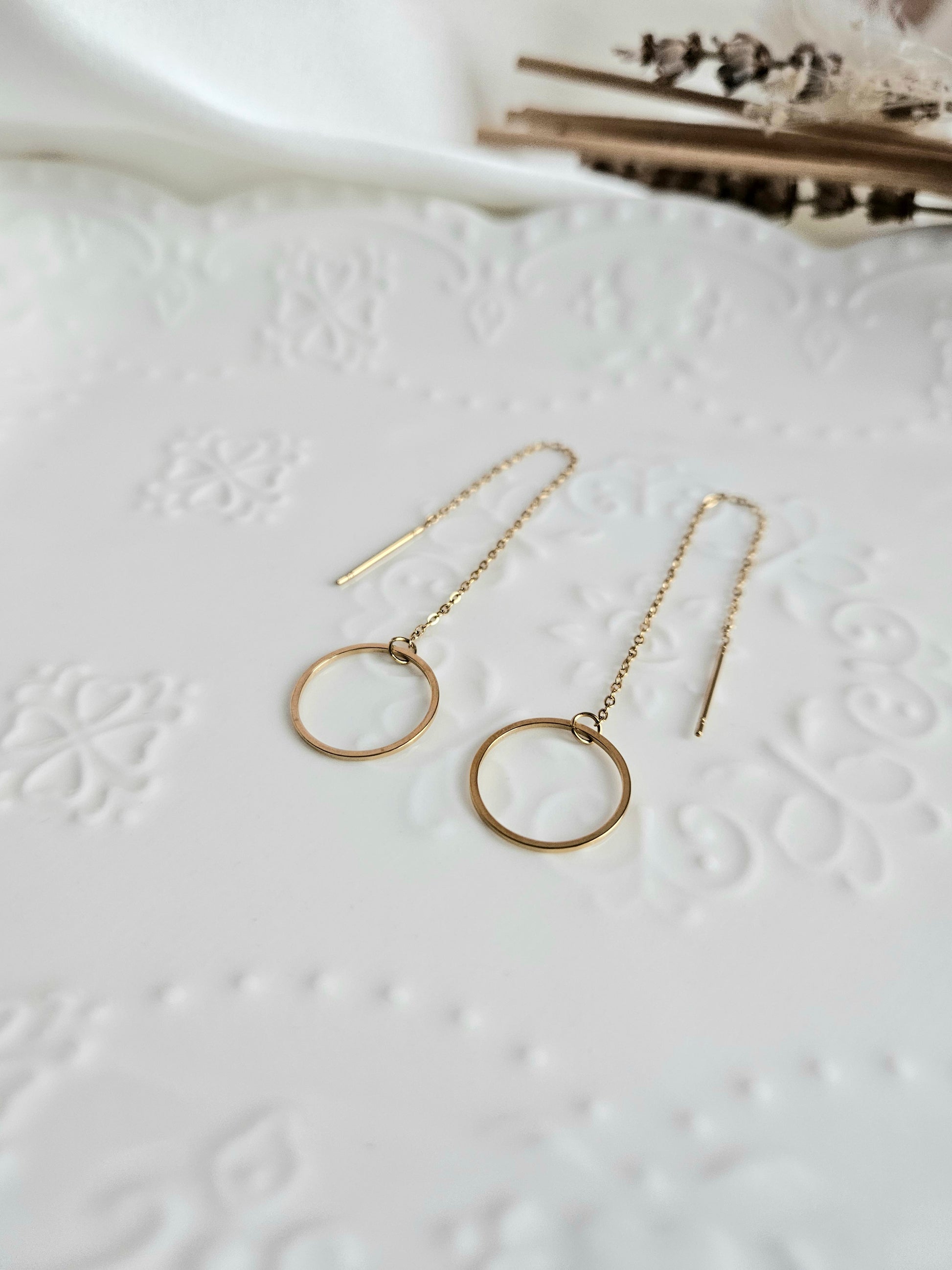 Lueur douce. Les boucles d'oreilles Naelia sont légères et fines, avec une chaîne dorée qui apporte un mouvement délicat. Elles illuminent subtilement le visage et s'adaptent à toutes les occasions.